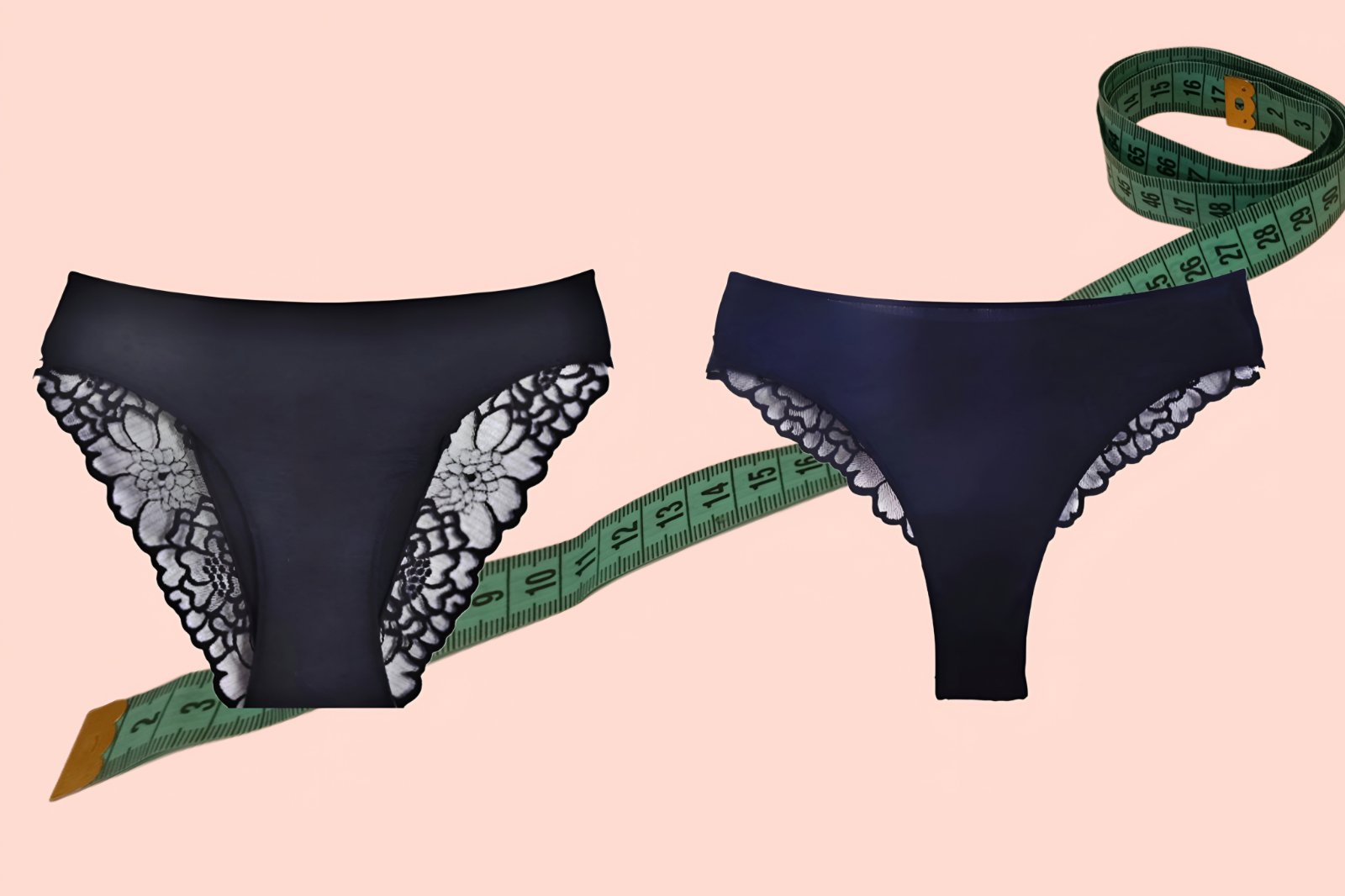 The right size in bikini briefs and Brazilians comes down to hip circumference. We measure, find our number in the chart, and when in doubt we size up. It really is that straightforward — once we know how.