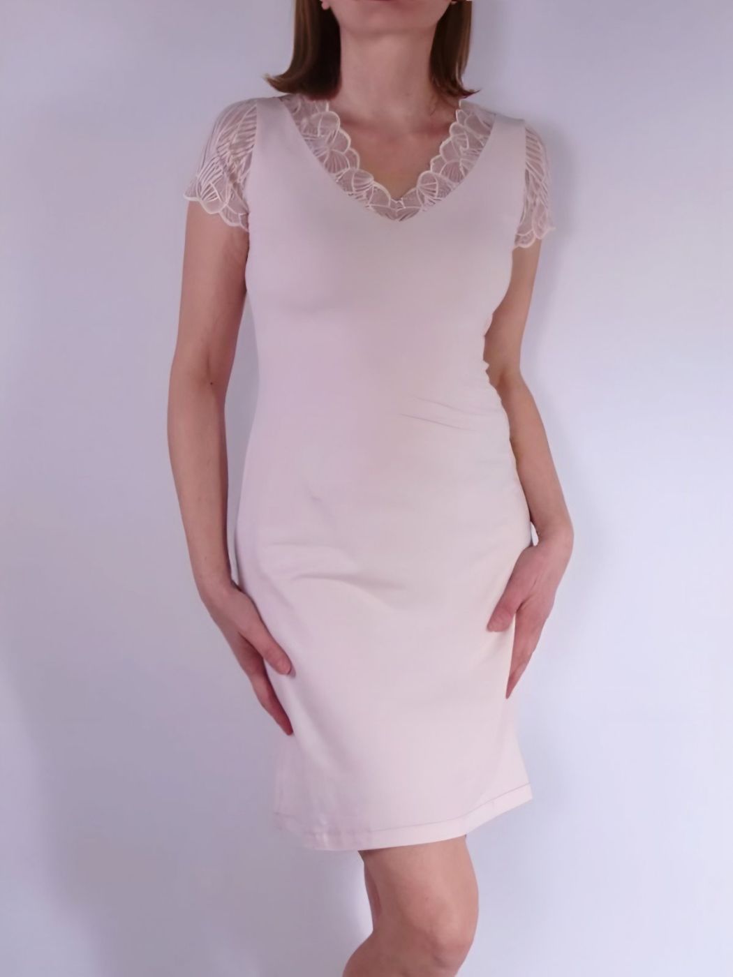 Cotton Nightdress with Lace and 3/4 Sleeves in Powder Cotton lace